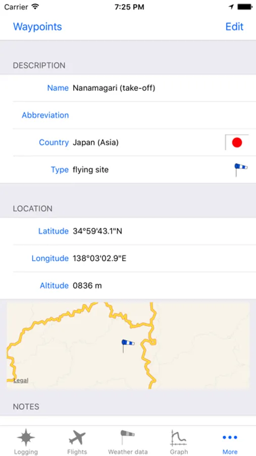 - default flight parameters can be stored and retrieved to make flight information entering for competitions easier;