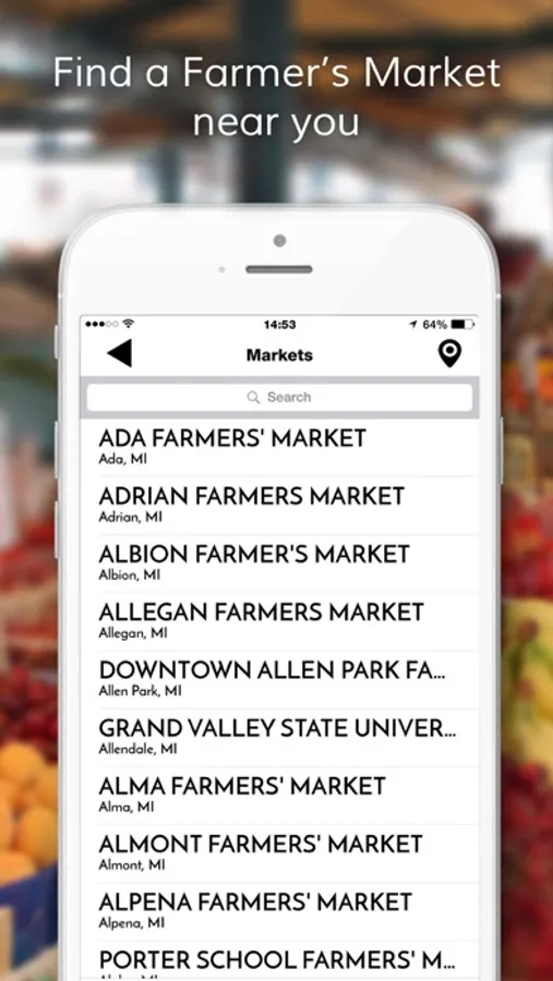 * Farmers Market locator, just click the pin in the top right corner to find markets nearest you.