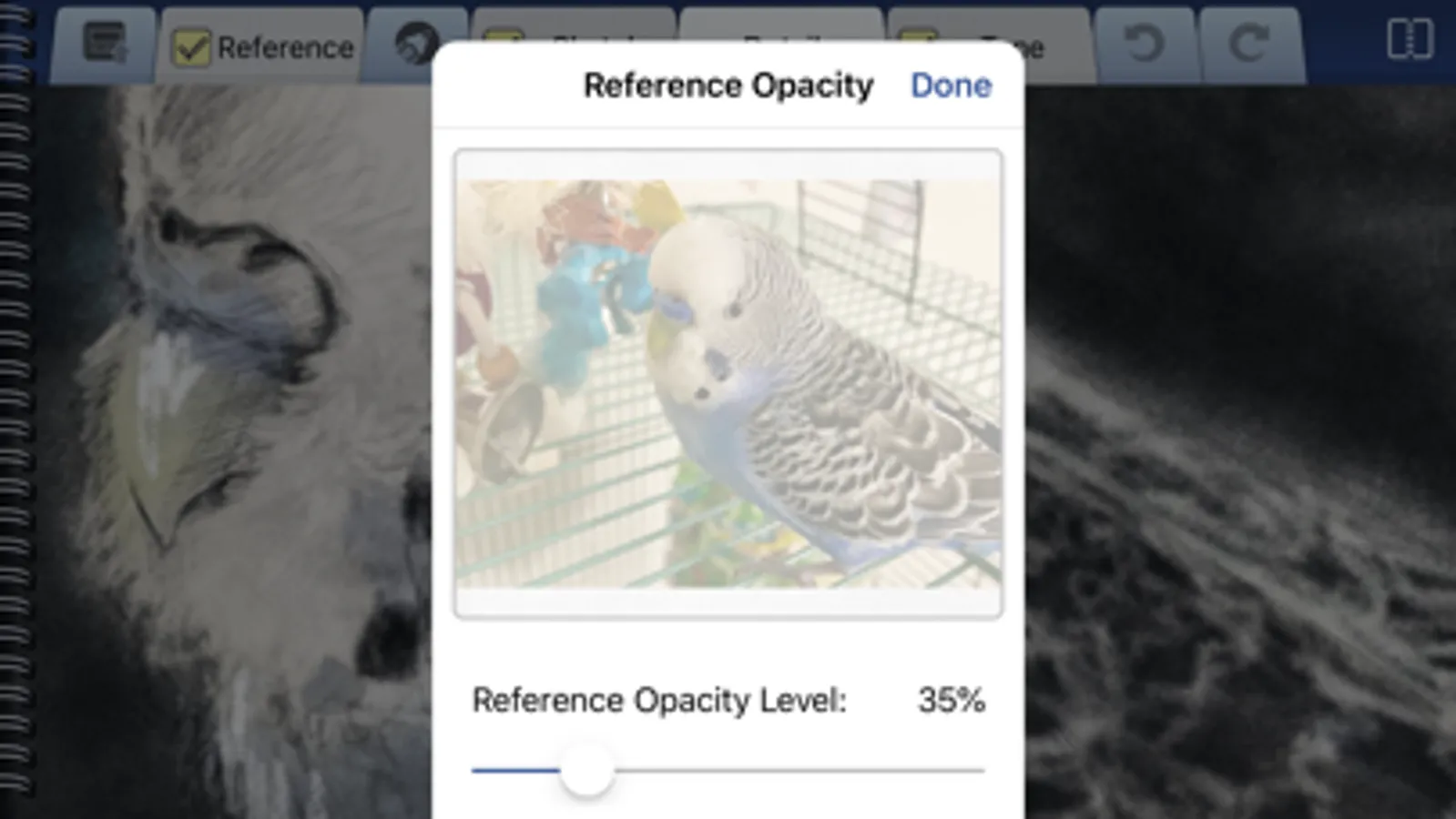 But when you do want to trace. . . swipe the binder over to utilize the full page where you can use your reference as a guide to get proportions picture perfect. Or enjoy full-screen mode with the reference layer toggled off to focus on detail, and maximize the iPad’s work surface.