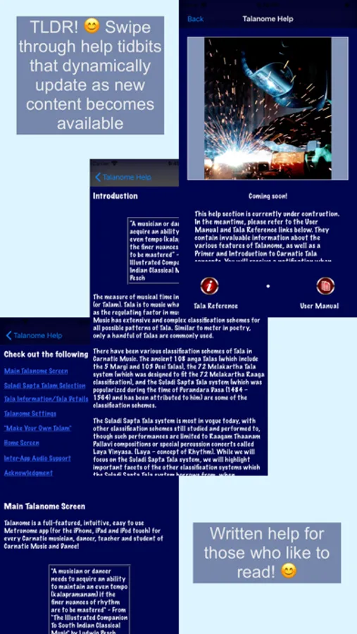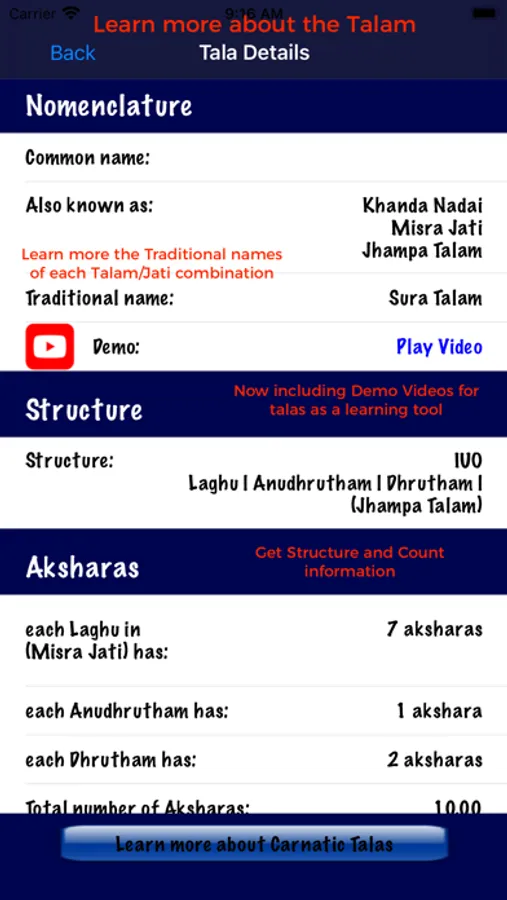 Talanome is also a learning tool for the newcomer - learn about Carnatic Talas along the way with its extensive information and help sections.