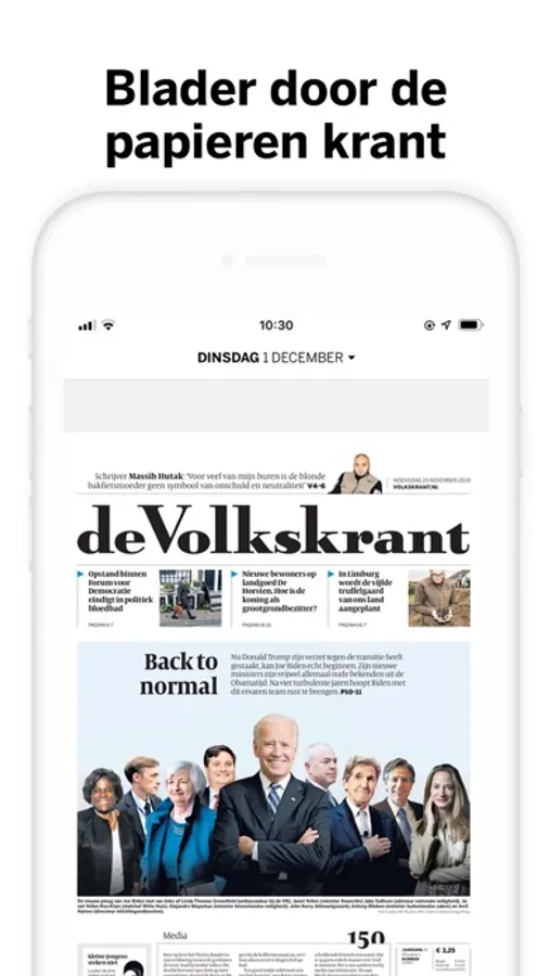 Klassieke krant weergave: lees de digitale versie van de papieren krant op uw iPhone.
