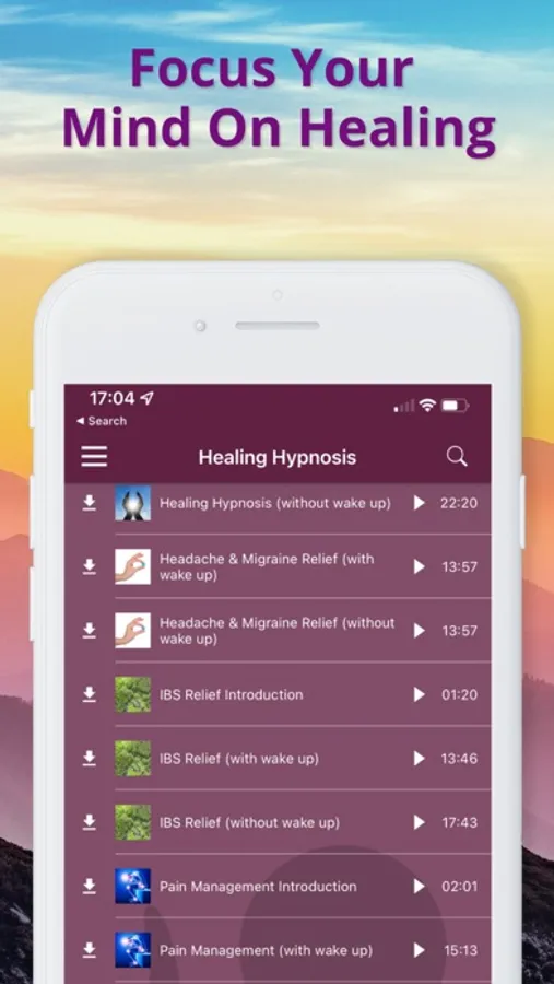 The science of psychoneuroimmunology has demonstrated that how we think and how we feel can have a big influence on how well we cope and recover from illness and injuries. This app features powerful hypnosis sessions designed to help you relax and accelerate the body’s natural healing processes.