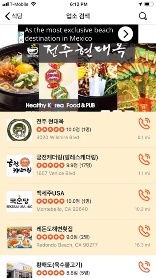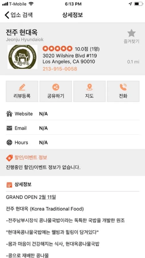 - 업소록은 주변 한인업소 검색, 전화 가능. 업소 정보, 위치, 사진, 리뷰 제공
