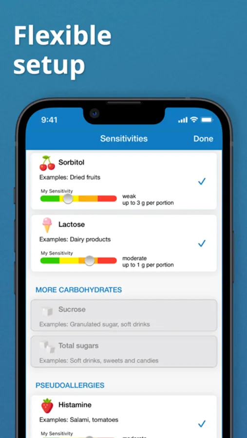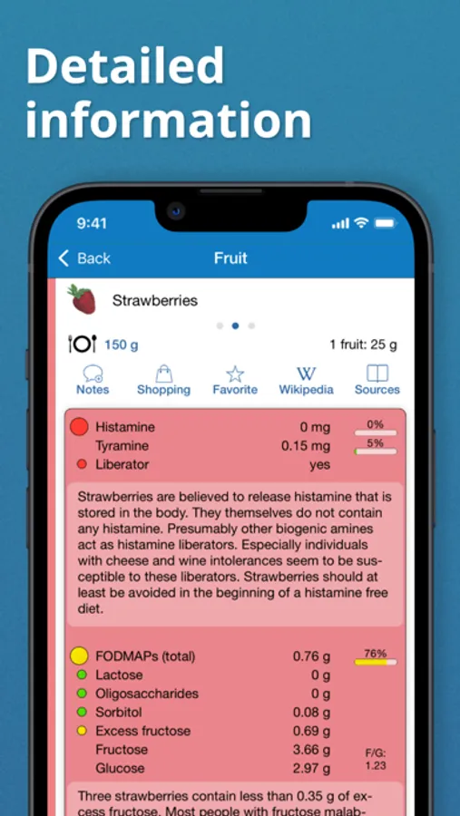 The app Food Intolerances helps you if you have to stick to a restricted diet after being diagnosed with food intolerances, sensitivities or allergies. It offers you an extensive food list with more than 1,100 foods, tables with the most important data and detailed comments for assessing the tolerance.