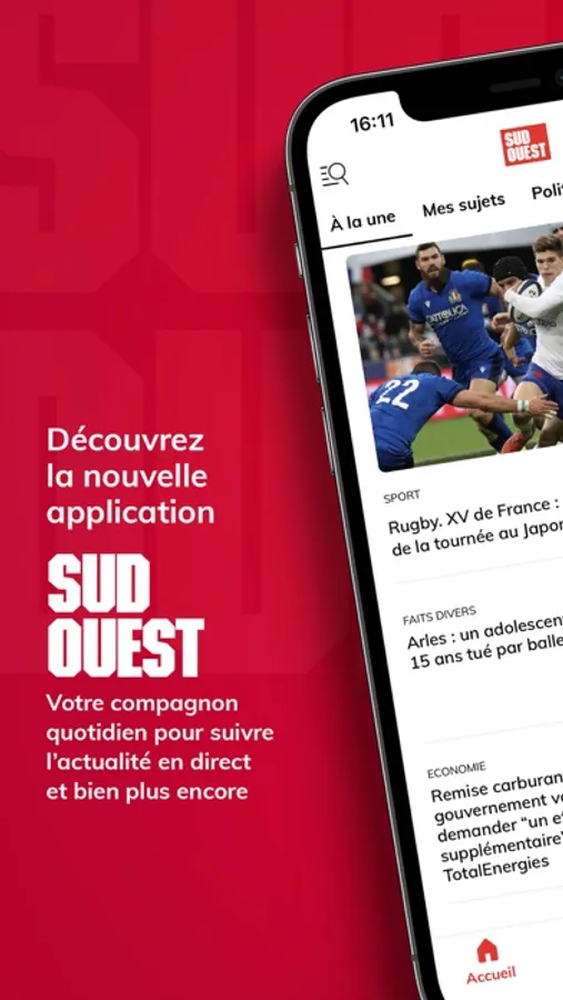 Découvrez notre nouvelle application Sud Ouest gratuite et retrouvez en continu et en temps réel toute l’actualité locale et exclusive de votre région, mais aussi l’actualité nationale et internationale.