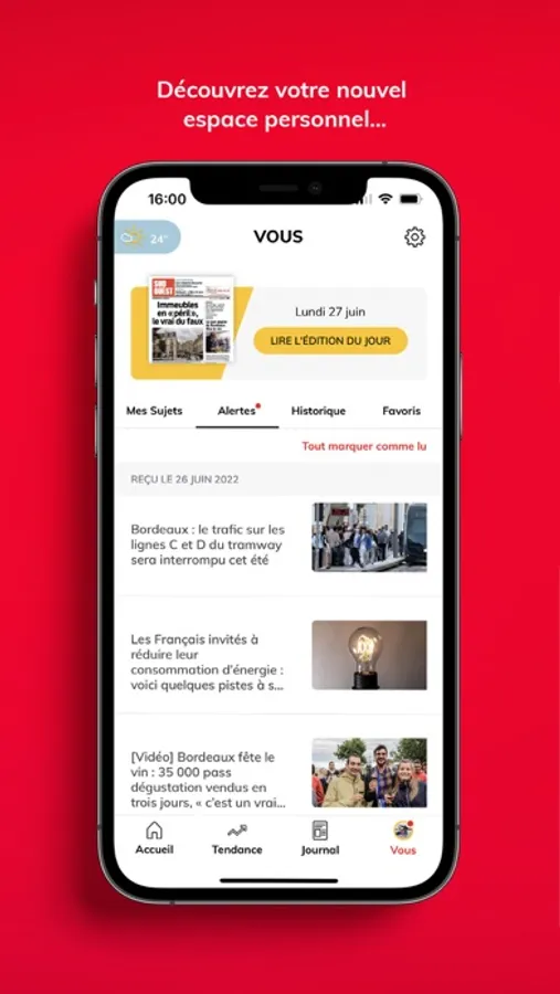 Grâce aux nouvelles fonctionnalités de l’application Sud Ouest, vous pouvez :