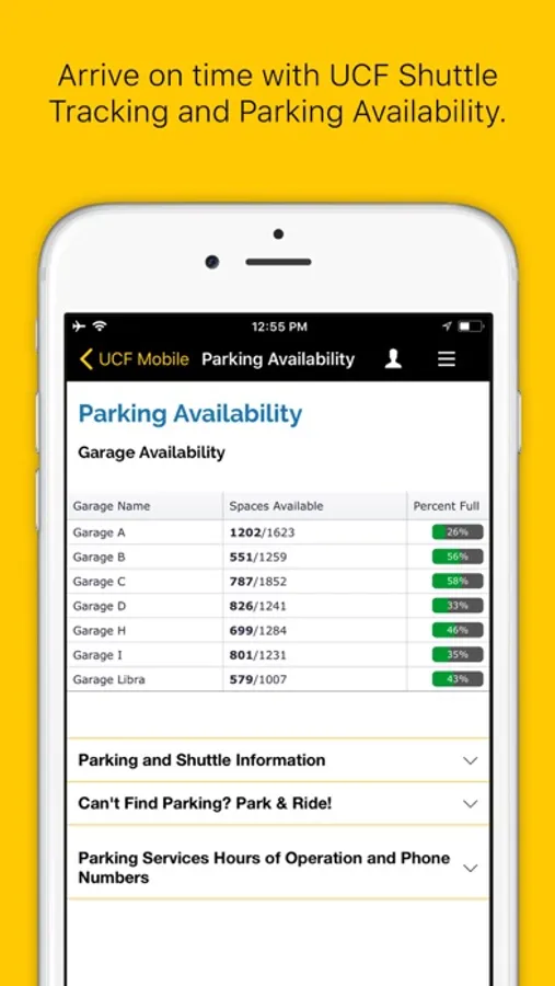 UCF Mobile includes many features to keep you connected while on-the-go. Below is a list of a few resources and services to make the most of the app.