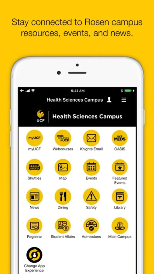This experience includes quick access to myUCF, Knights Mail, Webcourses, Shuttles, and resources specific to Health Sciences campus students, faculty, and staff.
