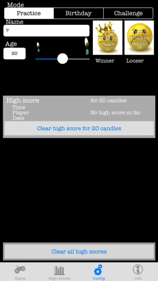 You can select a photo to be shown, everytime someone hits the highscore and blows out the candles faster than anyone before. This pic could be surpise to the birthday celebrant. Either take a picture with the camera or import the picture from iPhoto.