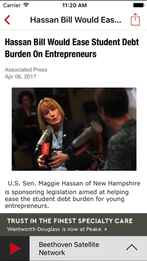 • The NHPR Public Radio App displays the web page associated with the program or program segment you are listening to On Demand so you can explore for more information.