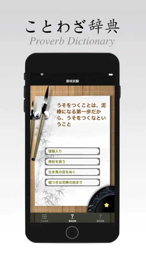2.表示することわざの説明より、四つの選択肢から正解のことわざを選択してください。