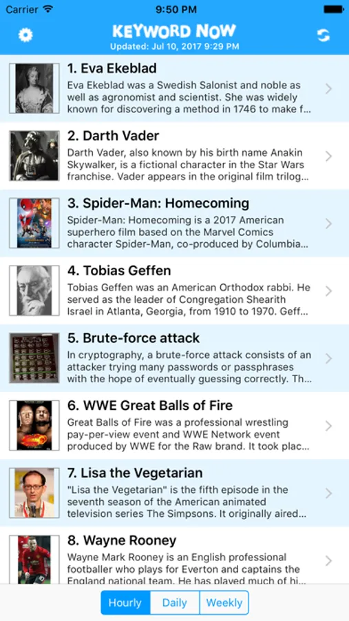 - Show the hourly, daily or weekly rankings of the most popular keywords