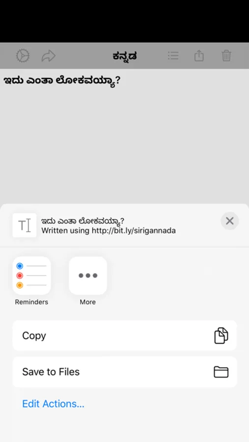 With Kannada Editor application you can write Kannada script on your device and share it on Social media or email with a click of a button!