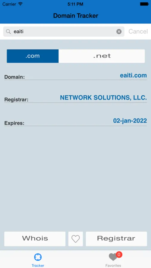 Domain Tracker lets you search for your favorite domain and display expiration date, whois and where it was registered. It also lets you store locally for future reference.