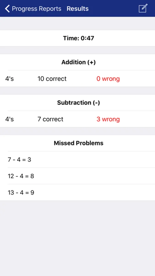 › EMAIL Progress Reports - Ability to send your results to teachers, parents, or whoever! (Note: An active email account must be setup on the device to use this feature.)