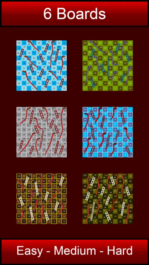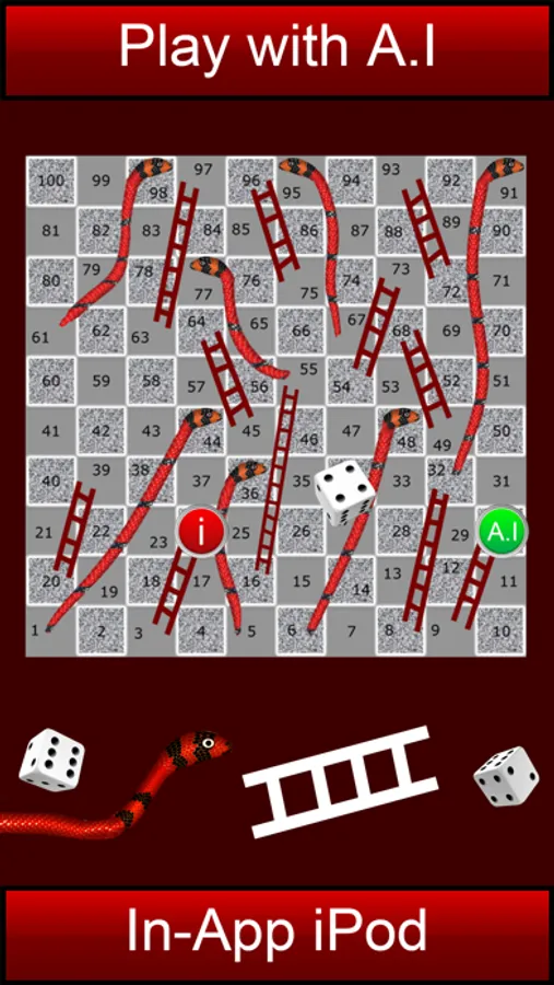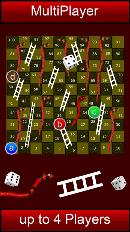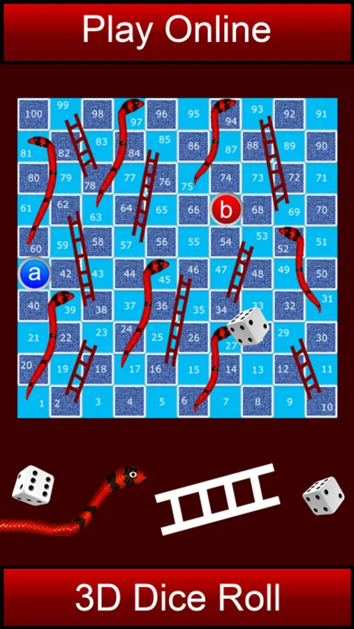 Snakes & Ladders also known as "Chutes and Ladders" in the United states. It can be played by up to four players. Each player race their token from start to finish according to dice rolls along a path. A player's score decreases if he/she lands on a grid where there is a Snake and a player's score increases if he/she lands on a grid where there is a Ladder. Snakes & Ladders game is a bit like the dice based Ludo board game.