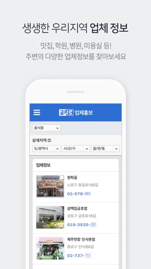 우리 동네 주변 맛집, 학원, 병원, 미용실 등의 서비스 업체 정보 (전화번호, 위치, 메뉴 등)를 안내 해 드립니다.
