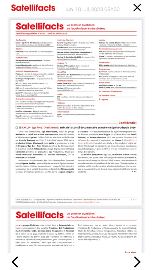 Satellifacts : le satellite d’observation stratégique des professionnels de l’audiovisuel et du cinéma. Toute l’info, vérifiée, analysée, contextualisée et clarifiée. Factuellement.