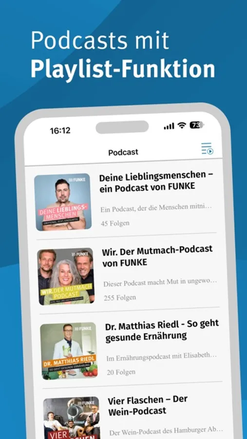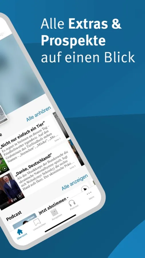 - Podcast: In der E-Paper-App finden Sie eine Vielzahl redaktioneller Podcasts – vom täglichen Nachrichtenüberblick bis zu vielen Spezialthemen.