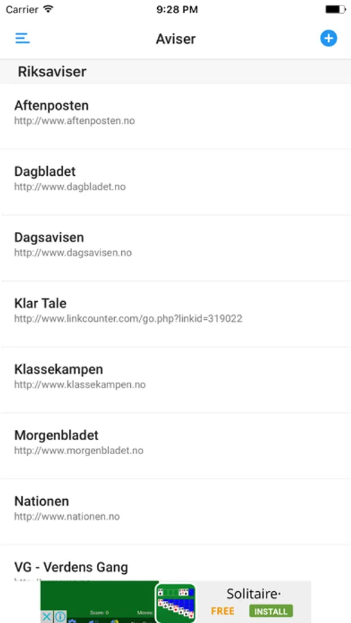 Enhver link (nyhetskilde eller annen link) kan legges til og kategorisert.