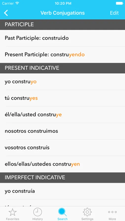 • Conjugation of Spanish verbs, all persons & tenses. Includes the Spanish VOS conjugation.