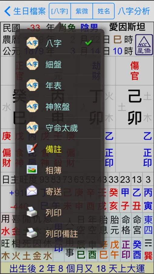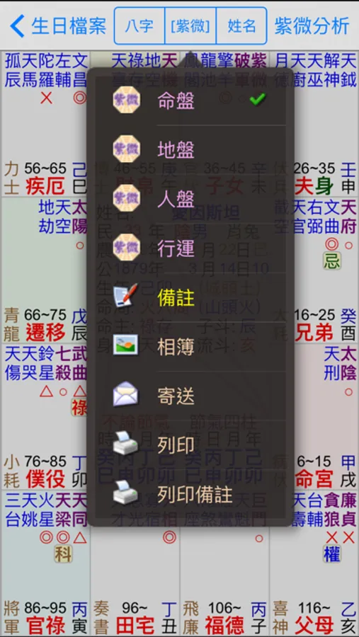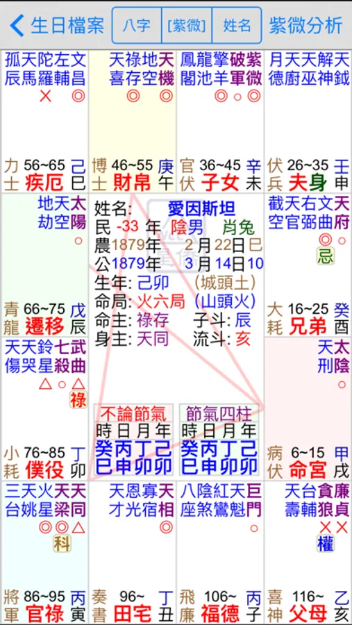 ●使用 iPad 大螢幕可顯示八字+紫微+姓名「三合一命盤」。