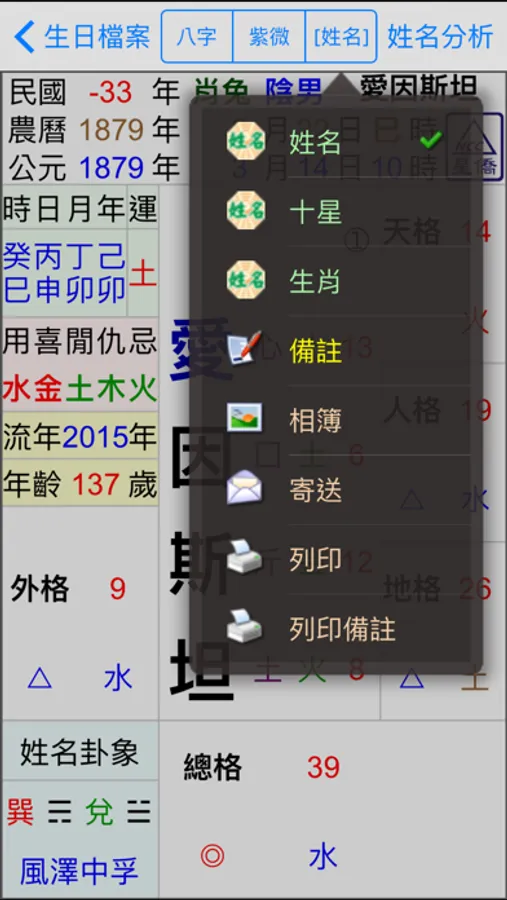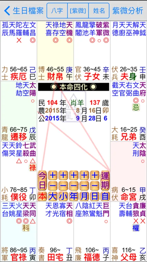 ●輸入一筆生日,可通用於八字、紫微、姓名「命盤」及「解說」。
