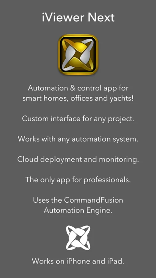 iViewer Next is the Premiere release of CF iViewer for professional integrators use only. This application is targeted at high end automation installations.
