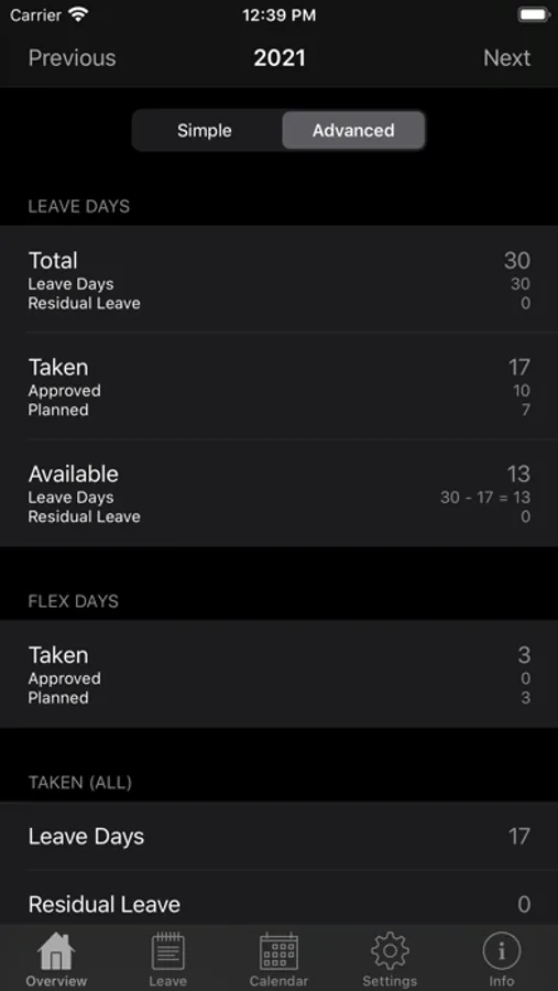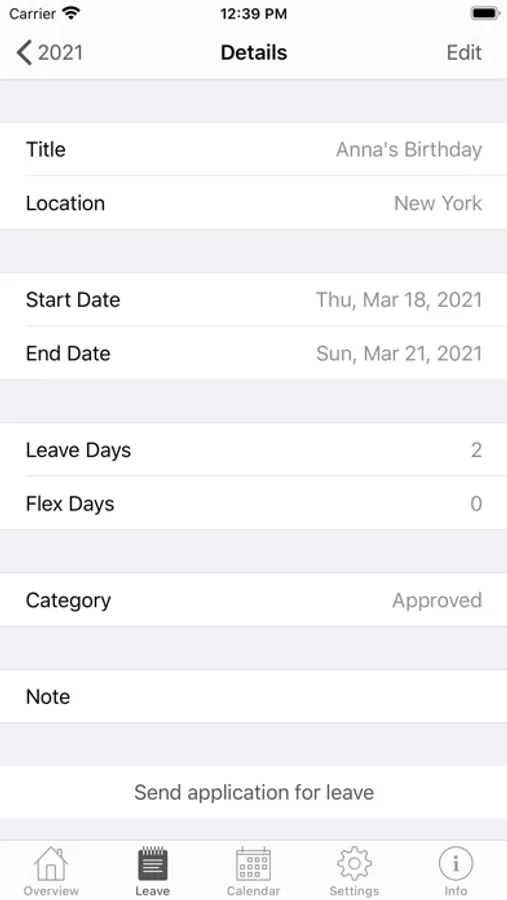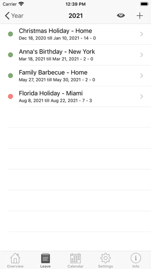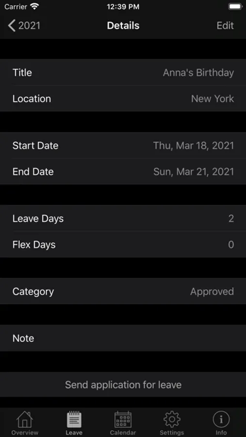 - if you like, the app automatically creates iOS calendar events for your leave entries