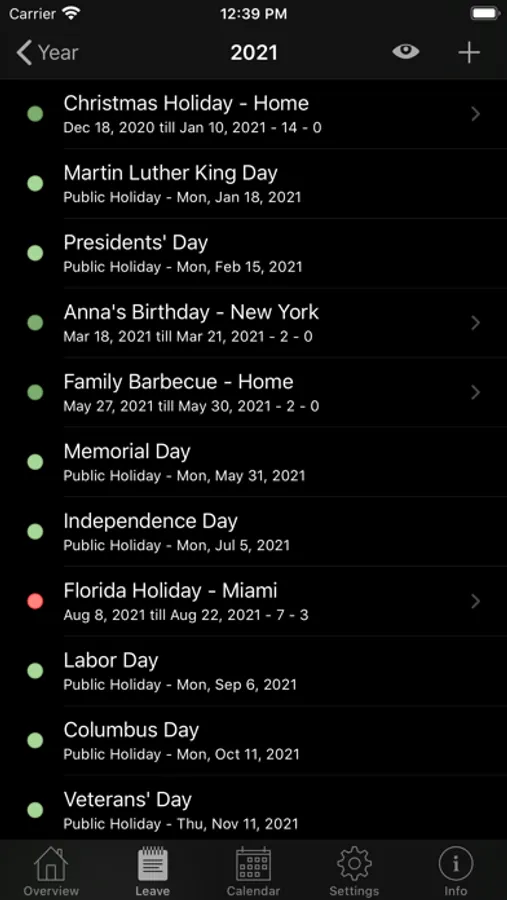 Annual Leave helps you to plan, track and overview your leave. The app contains the public holidays of the United States and further countries (see below) to make planning even more easy. No longer miss a long weekend!