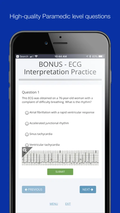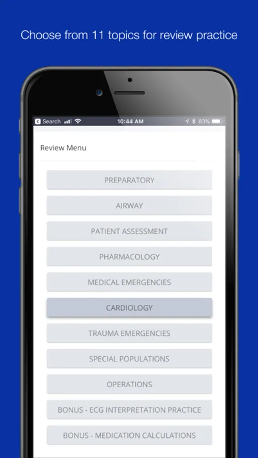 225 topical multiple choice questions covering all major paramedic modules. Diagnostic scoring at the end of the exams will let you know what areas you need to go back and review.