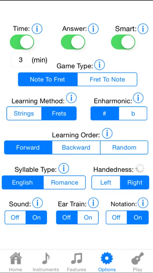 • Configure whether the answer is shown, sound is heard, and/or notation is shown when you want to challenge yourself further.
