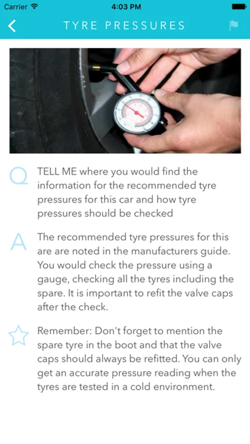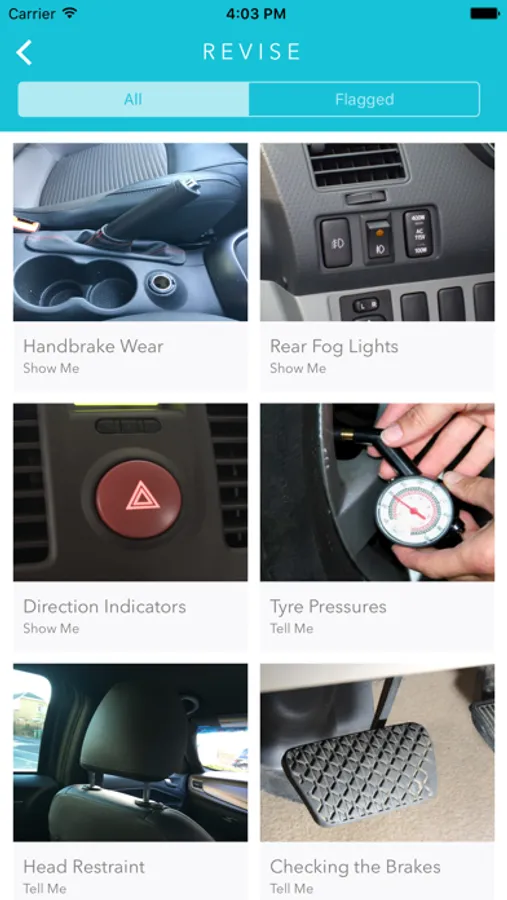 This app allows you to revise and test yourself on ALL 19 of the possible Show Me Tell Me questions.