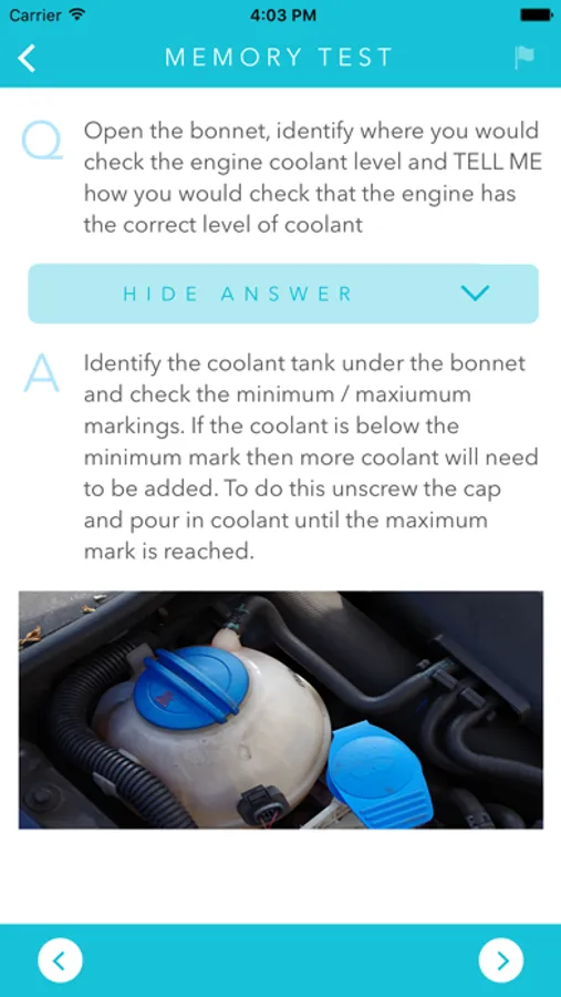 one ‘tell me’ question where you have to explain how you’d carry out the vehicle safety check