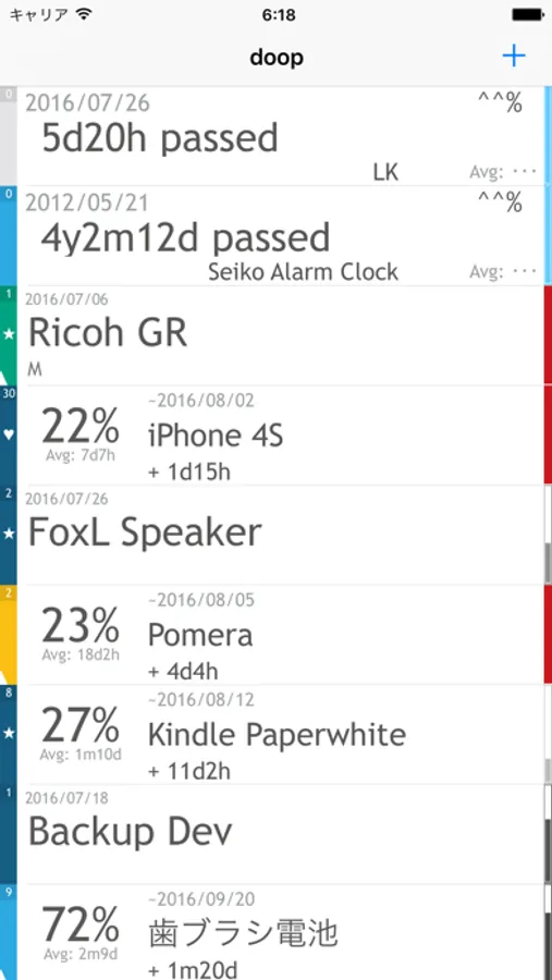 3) Countdown: Number of days the date and time to get to the average number of days used on the upper and lower average number of days used, the title under a percent.