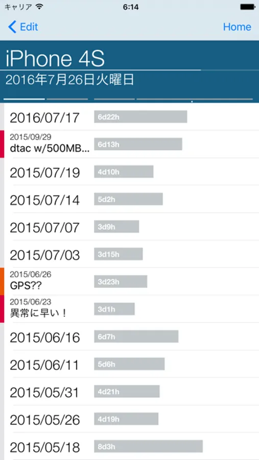 ・Center Tap: Edit installed/removed time, delete, and add memo.