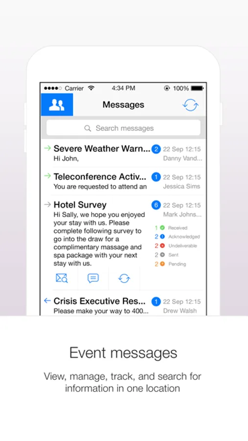 From your iOS device, you can send, automate, log and report on communications and notifications from various locations, using a combination of SMS, email and voice.