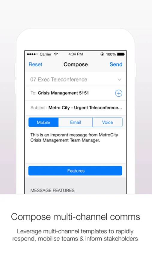 • Leverage multi-channel templates and pre-defined contact lists to quickly execute structured and controlled communications, when you don’t have access to your computer or office.