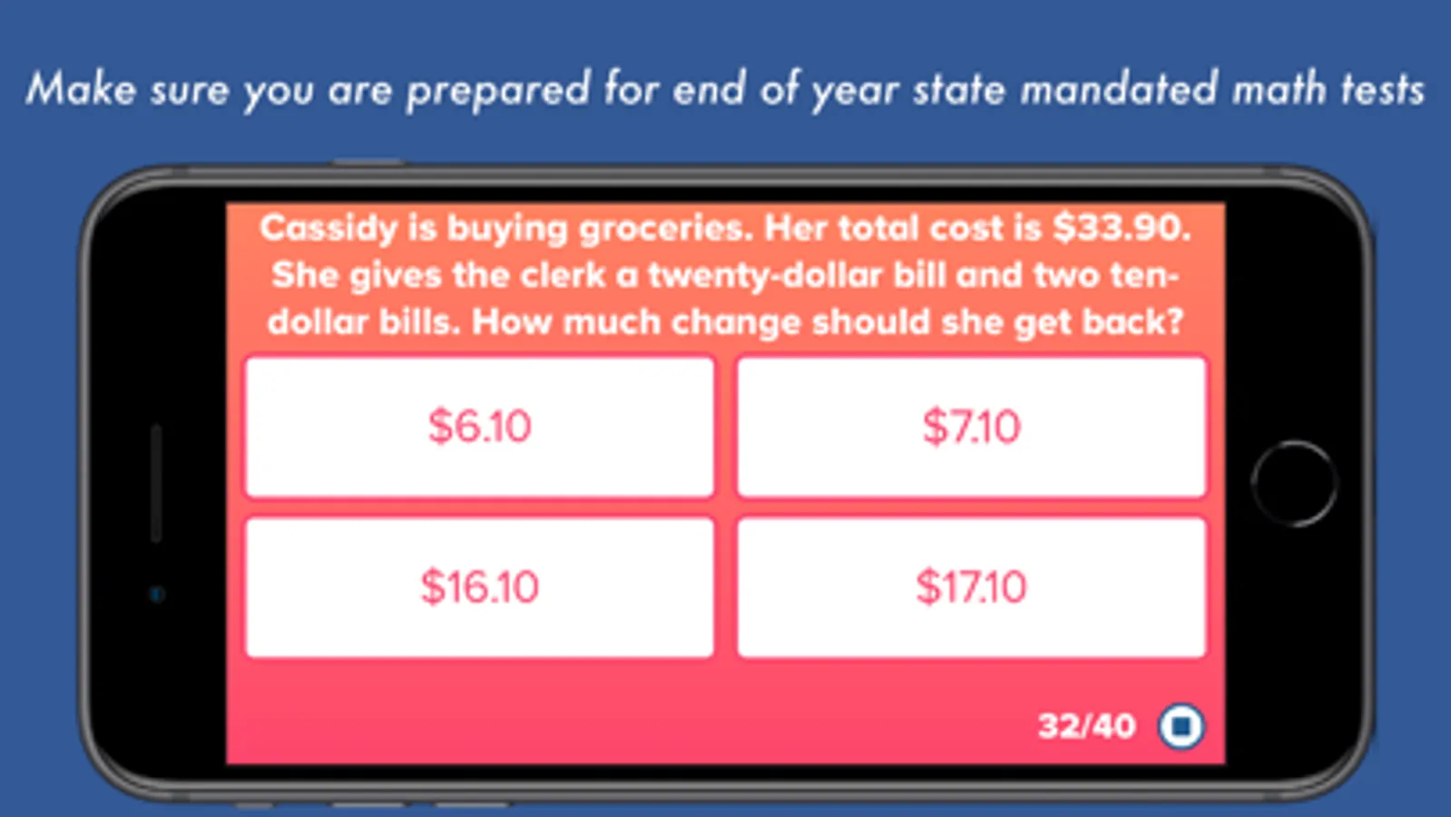 This app helps to assess if you're ready for the end of 4th grade tests. You will see an explanation of how to find the right answer when you get a question wrong, but there is no other teaching in the app. It's practice for your test!