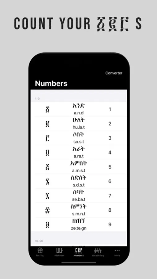 - Convert Arabic numbers to their Amharic equivalent (some features require subscription)