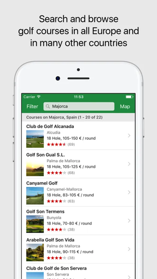 - Search and browse golf courses in all Europe and in many other countries
