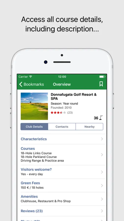 - Access all course details, including description, visitor information, green fee prices and photos