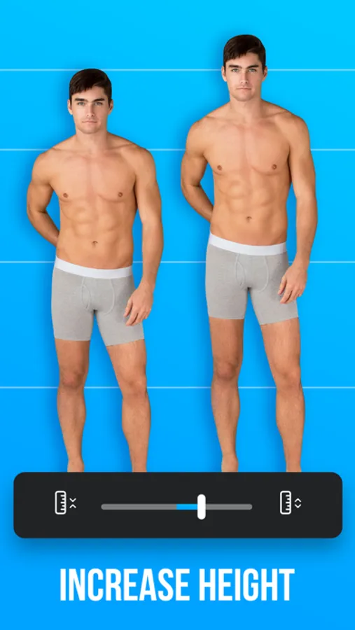 Photo body reshaping has never been easier! If you want to enlarge your muscles in the photos, MenEditor will make your body look perfect in just a few minutes. The app is also perfect if you need to add a few centimeters to your height and lengthen your body.