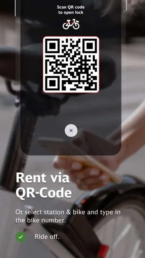 In the app, all bikes are displayed on an interactive map and can be rented on site via QR code or by entering the bike number.