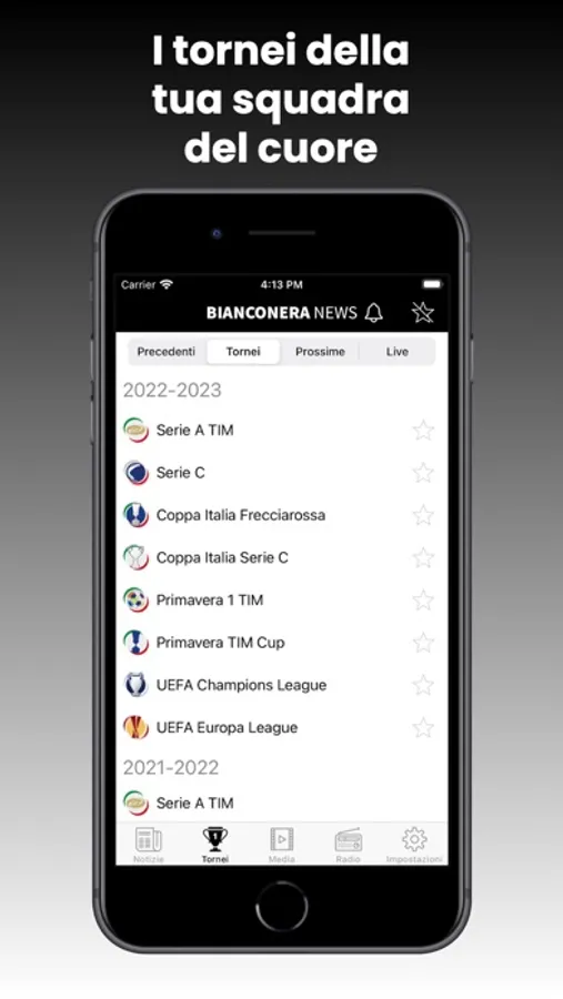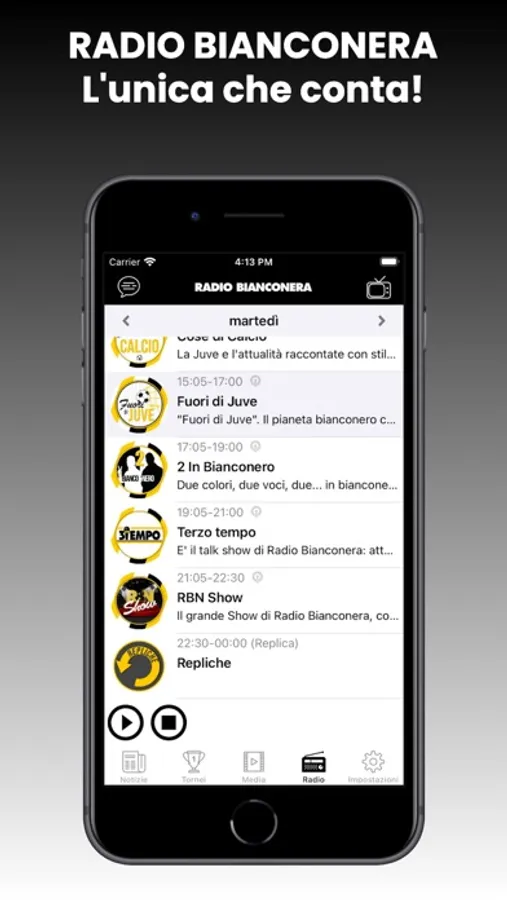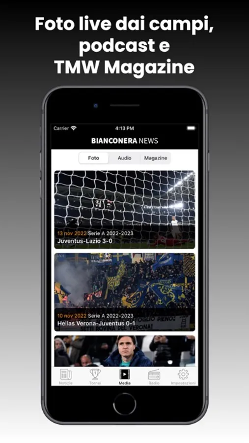 Puoi ascoltare Radio BiancoNera, la radio per sentire costanti informazioni ed approfondimenti sul calcio e sulla tua squadra del cuore.