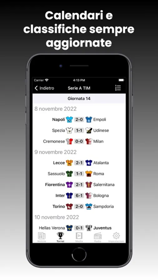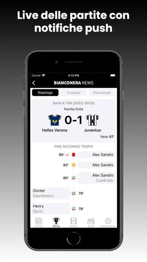 Puoi assistere alle cronache live dei match più importanti.