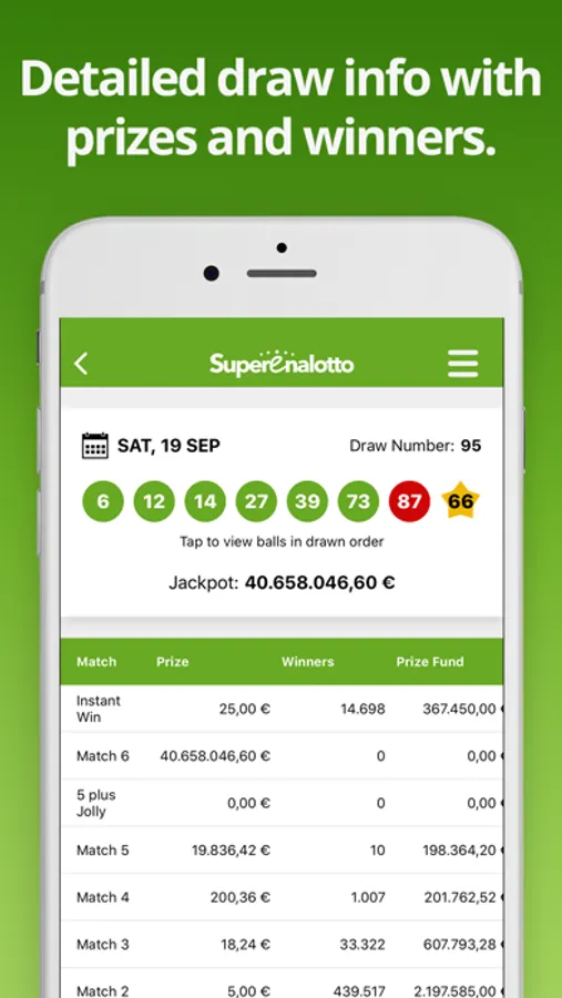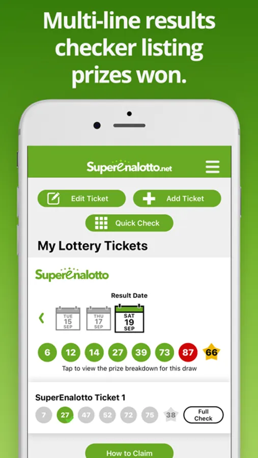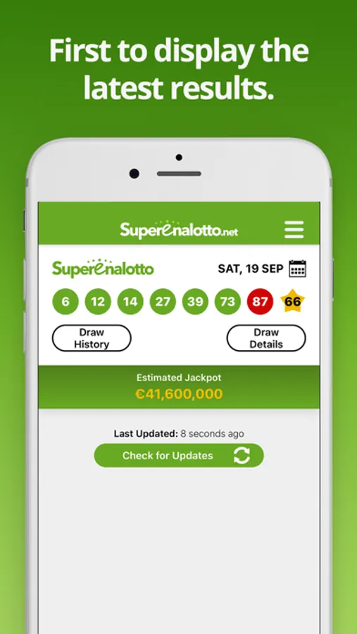Get the latest SuperEnalotto results within seconds of the draw taking place. This easy to use app shows the SuperEnalotto numbers and full prize breakdown including number of winners and prizes paid.