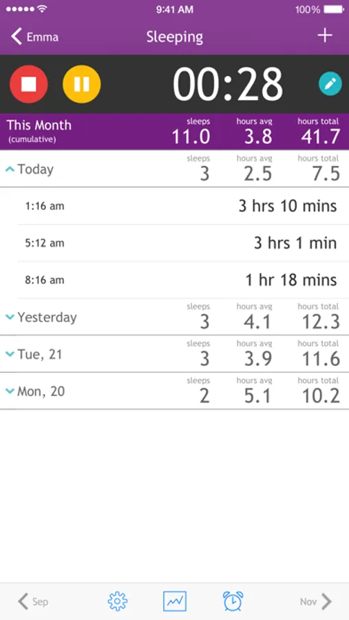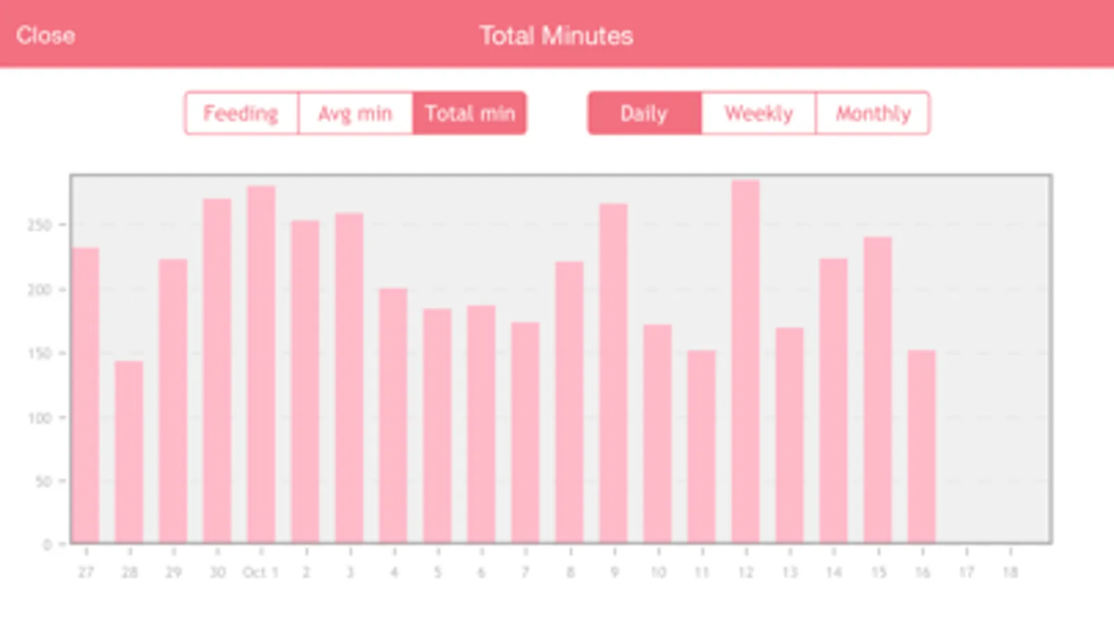 • See detailed and useful info on your nursing progress: most recent nursing, daily averages, cumulative totals, and graphs. We even help you calculate how much you’ve fed your baby!