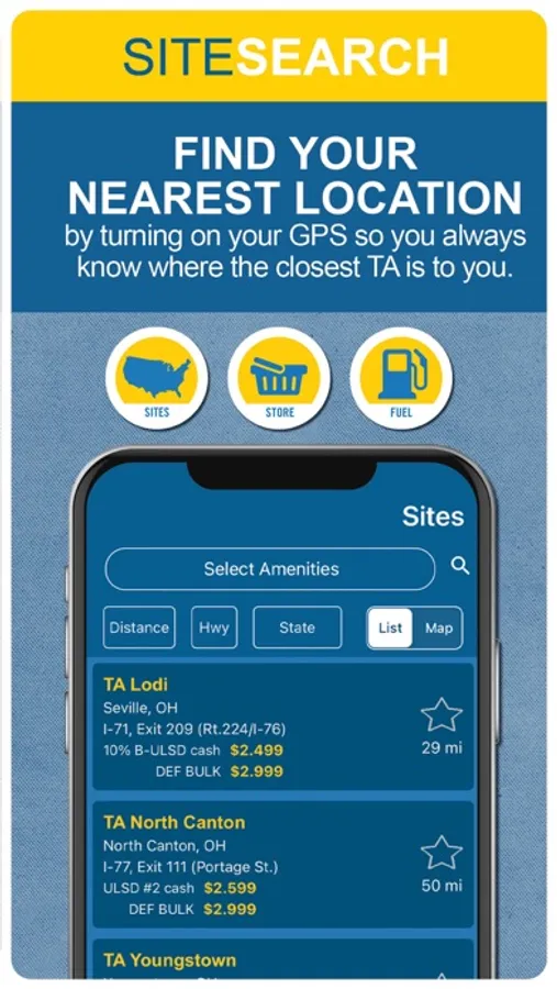 TruckSmart gives you have the full service advantage of TA, Petro and TA Express right at your fingertips! Map out your daily route to include TA, Petro and TA Express locations. Locate diesel and gasoline fueling services, Point redemption at register, Activate Fuel pumps with PumpSmart feature, full and quick-serve restaurants, heavy truck maintenance services, 24-hour c-stores, WIFI and more. Plus, we offer 24/7/365 roadside repair with our RoadSquad program.