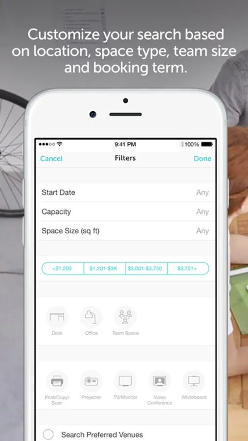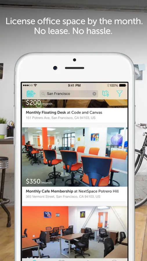 - Customize your search based on location, space type, team size and booking term.